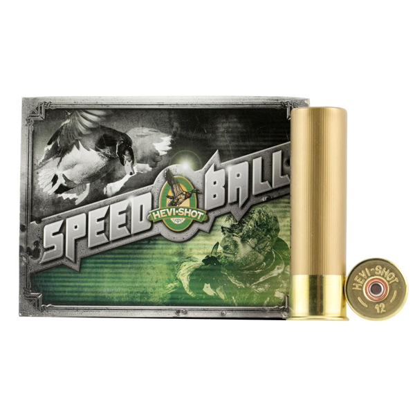 The HEVI-Shot Speedball 12 Gauge Steel Shotshells are intended for hunting waterfowl with a steel-rated gun or choke. They’re layered with Speedball® technology in the wad, followed by an MV2™ base, a thick copper layer and a small steel core. 10-round box. Made in USA.